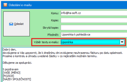 Odeslání upomínky